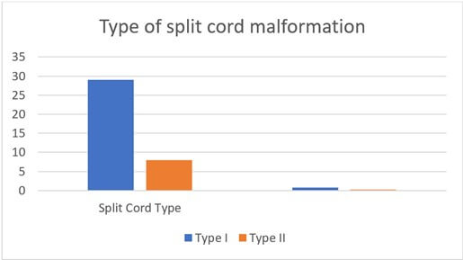 On the MRI type one split cord was the commonest type, accounting for 78.4% of the cases (Figure 1).
